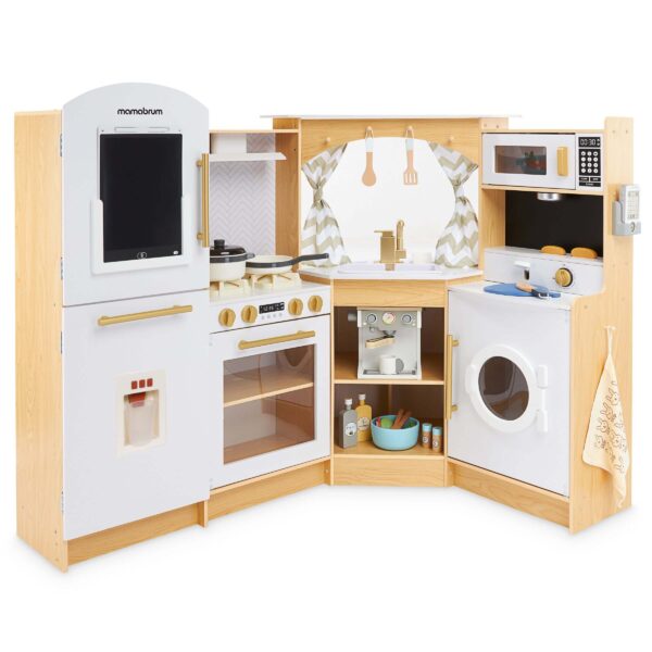 Didelė medinė interaktyvi virtuvėlė – tai įspūdinga Mamabrum „MAM171 KITCHEN“, sukurianti tikrovišką maisto gaminimo pasaulį vaikams. LED apšvietimas, garsai, tikras vandens čiaupas ir daugiau nei 50 priedų paverčia šį rinkinį ne tik žaislu, bet ir nepamirštamu patyrimu.