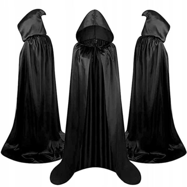 Helovino kostiumas – Juodas, paslaptingas ir elegantiškas… Šis burtininko apsiaustas taps nepakeičiama dalimi Jūsų Helovino kostiumo ar karnavalo įvaizdžio. Sukurtas taip, kad derėtų tiek su klasikiniais, tiek su fantazijos motyvais įkvėptais deriniais, jis suteikia neįtikėtiną vizualinį efektą ir leidžia išsiskirti iš minios.