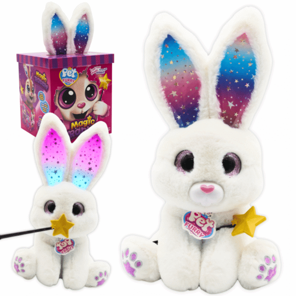 Interaktyvus magiškas triušis – tai viena karščiausių ir vaikų geidžiamiausių dovanų! Atidarykite dėžutę – ir prasideda magiškas nuotykis! Šis interaktyvus triušis reaguoja į glostymą, skleidžia garsus, šviečia ausytėmis ir tampa ištikimu mažojo draugu.