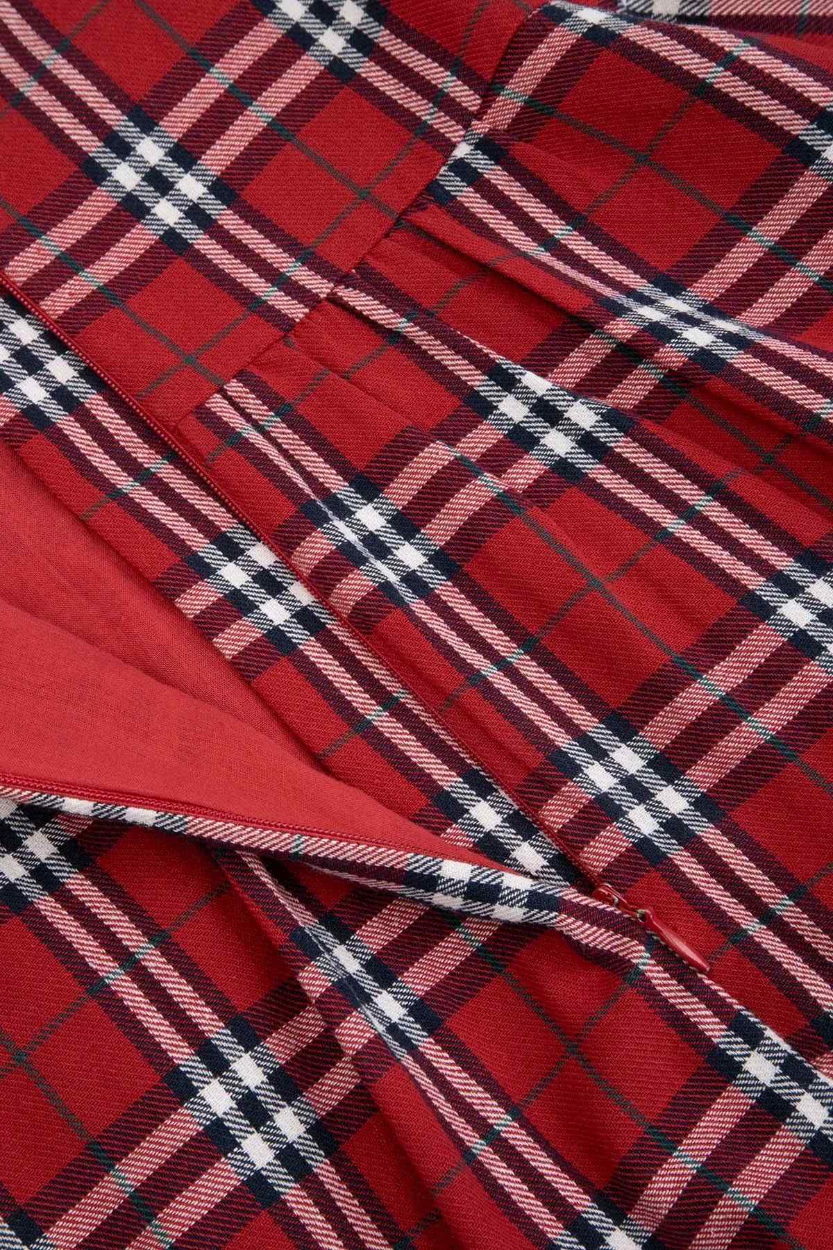 Šventiškas languotas dizainas, šukuotos medvilnės minkštumas ir elegantiškai platėjantis siluetas – suknelė, kuri Kalėdoms kuria nuotaiką.