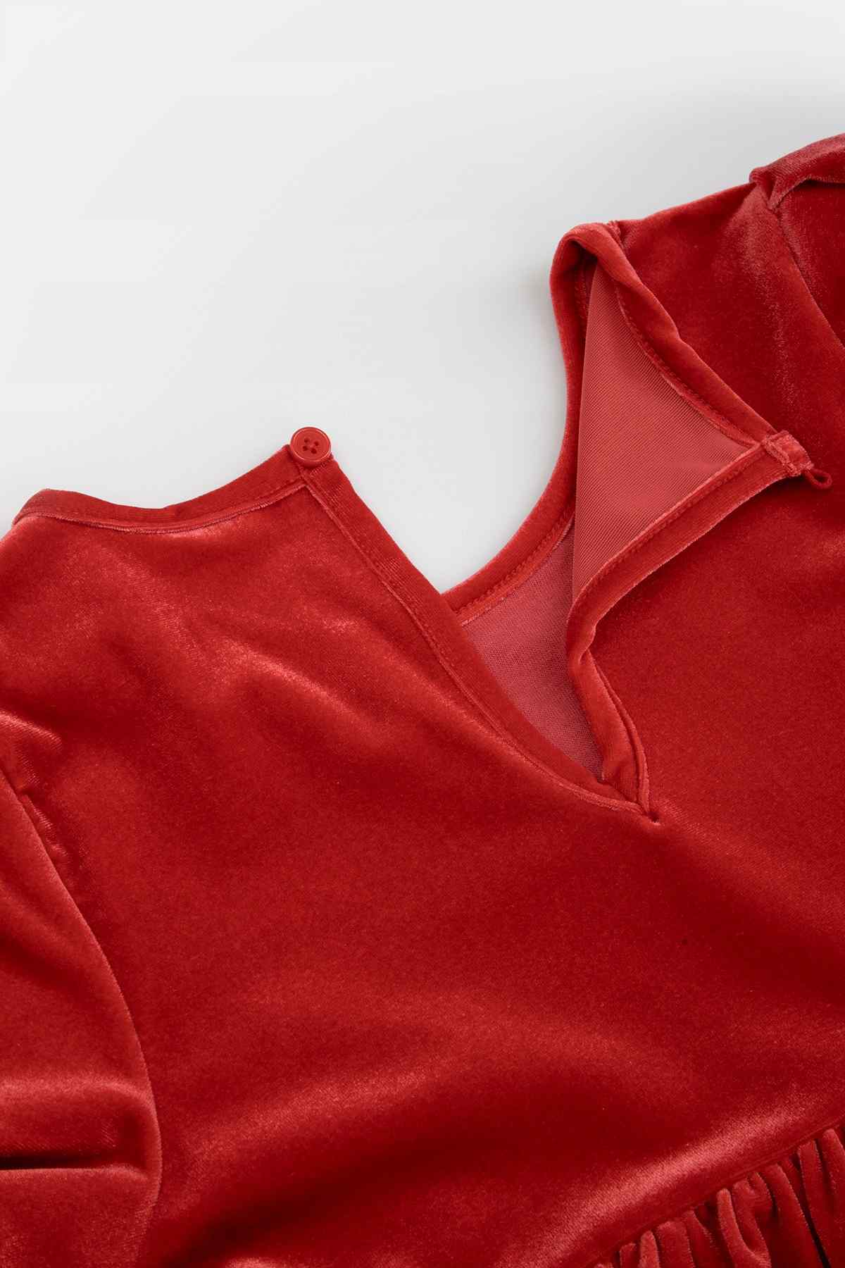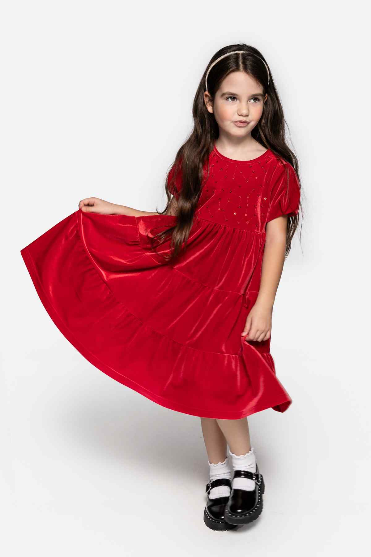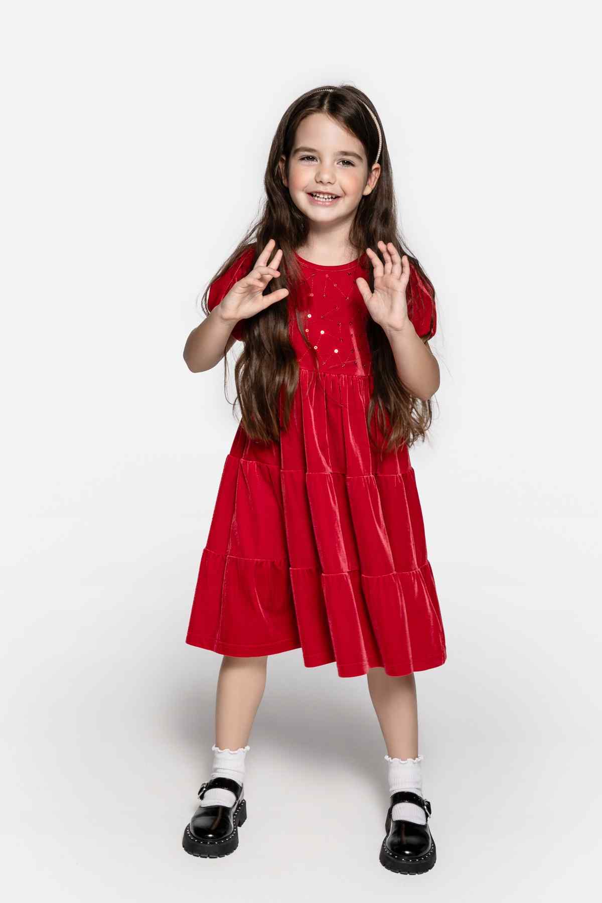 Kalėdinė suknelė mergaitei, dažnai tampa ne tik apranga – bet prisiminimu. Jos raudona spalva ir aksominė tekstūra spinduliuoja šilumą, o mergaitės šypsena… padarys šventę dar gražesnę.