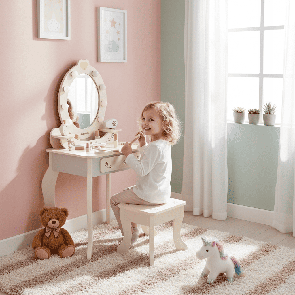 Ieškote ypatingos dovanos gimtadieniui, Kalėdoms ar kita proga? Kosmetinis staliukas su veidrodžiais – ne tik funkcionalus, bet ir įsimintinas žaislas, kurį vaikas prisimins ilgai. Jis skatina savarankiškumą, estetikos pojūtį ir įtraukia į prasmingą žaidimą.