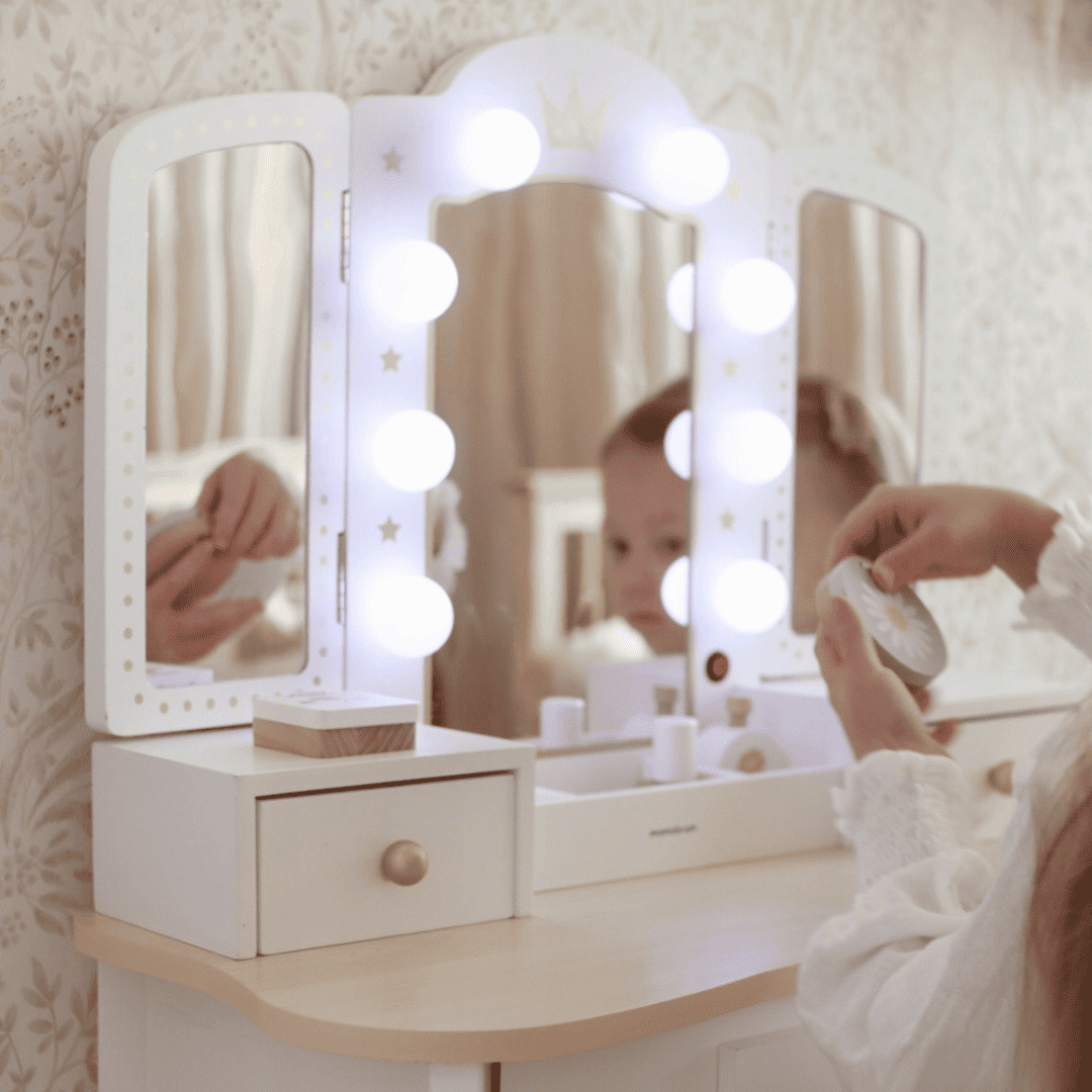Ieškote ypatingos dovanos gimtadieniui, Kalėdoms ar kita proga? Kosmetinis staliukas su veidrodžiais – ne tik funkcionalus, bet ir įsimintinas žaislas, kurį vaikas prisimins ilgai. Jis skatina savarankiškumą, estetikos pojūtį ir įtraukia į prasmingą žaidimą.