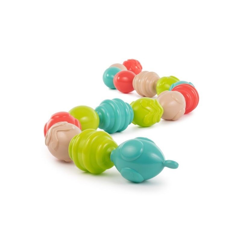 Lavinamasis rinkinys– pagamintas iš ekologiško bioplastiko, gaunamo iš cukranendres. Didelės, įvairių tekstūrų ir spalvų detalės sukurtos patogioms mažoms rankytėms. Kiekviena detalė turi skylutę vienoje pusėje ir išsikišimą kitoje, todėl jas lengva sujungti, dėlioti sekas ir kurti įvairias kombinacijas.