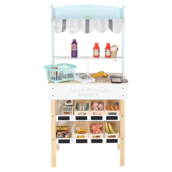 Medinė parduotuvė su priedais, Lulilo – tai žavinga ir saugi erdvė, kur vaikai gali išbandyti pardavėjo, pirkėjo ar net prekių tvarkytojo vaidmenį. Ši fantastiška parduotuvė skatina vaikus skaičiuoti, dėlioti prekes lentynose, rūšiuoti ir kurti savo prekybos pasaulį. Tai ne tik smagus laisvalaikio praleidimo būdas, bet ir puiki priemonė lavinti įvairius įgūdžius – nuo socialinių iki pažintinių.