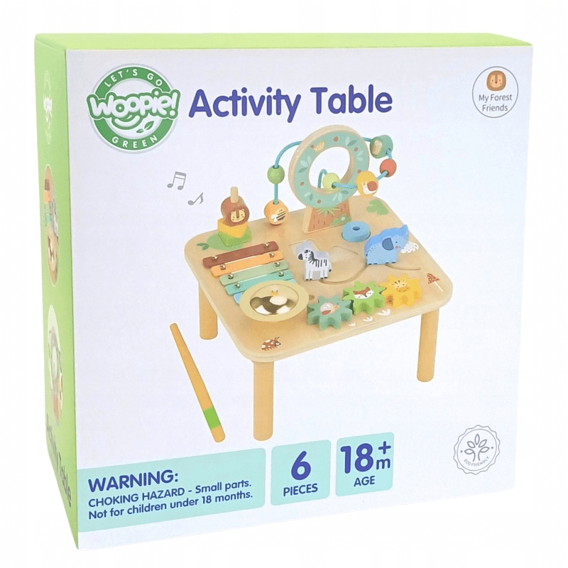 Šis veiklos staliukas, lavina vaikų pojūčius ir motorinius įgūdžius. Žaislas padeda skaičiuoti, o įvairios figūros lavina vaiko žodyną, formų nustatymą ir emocijų pažinimą.